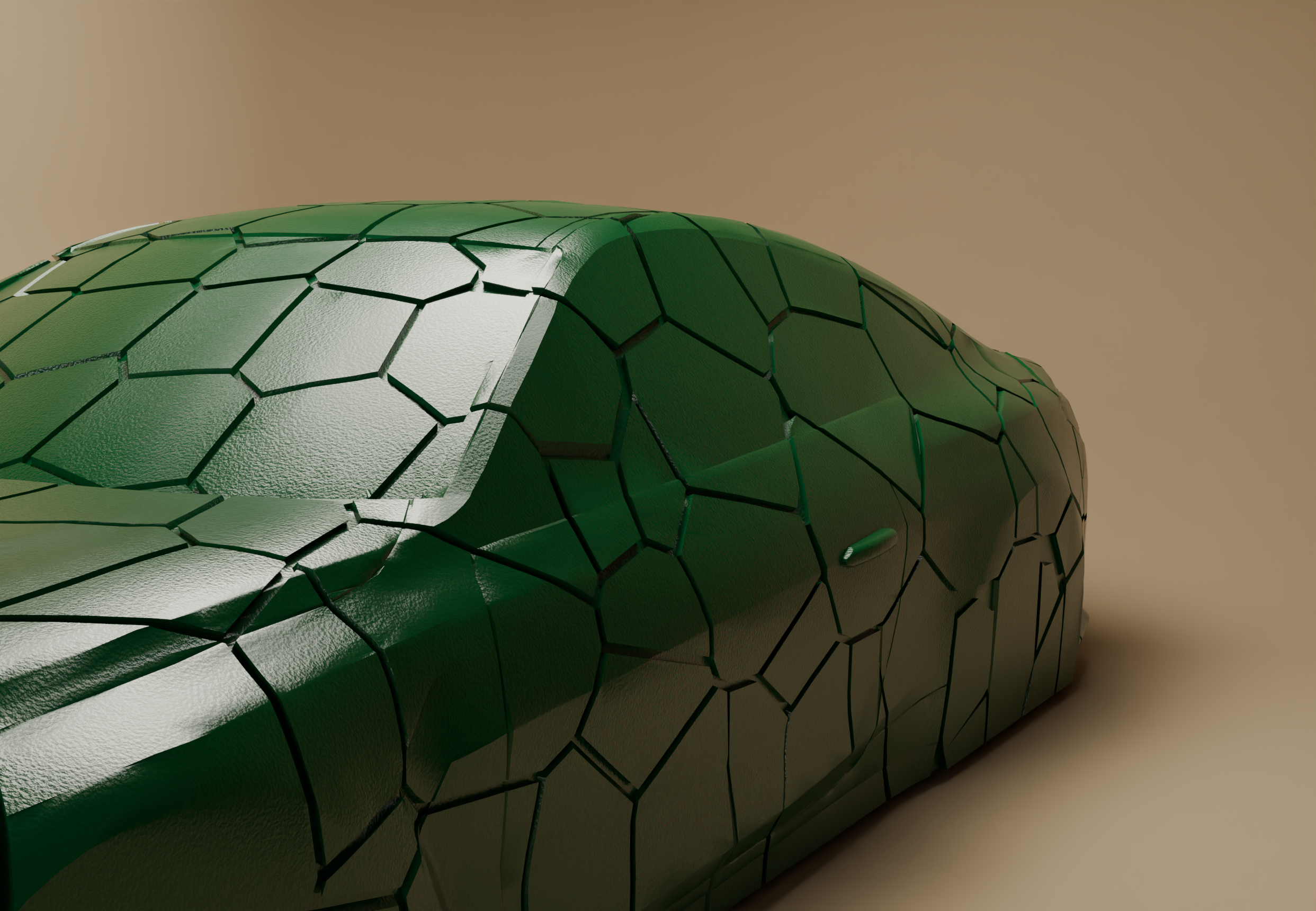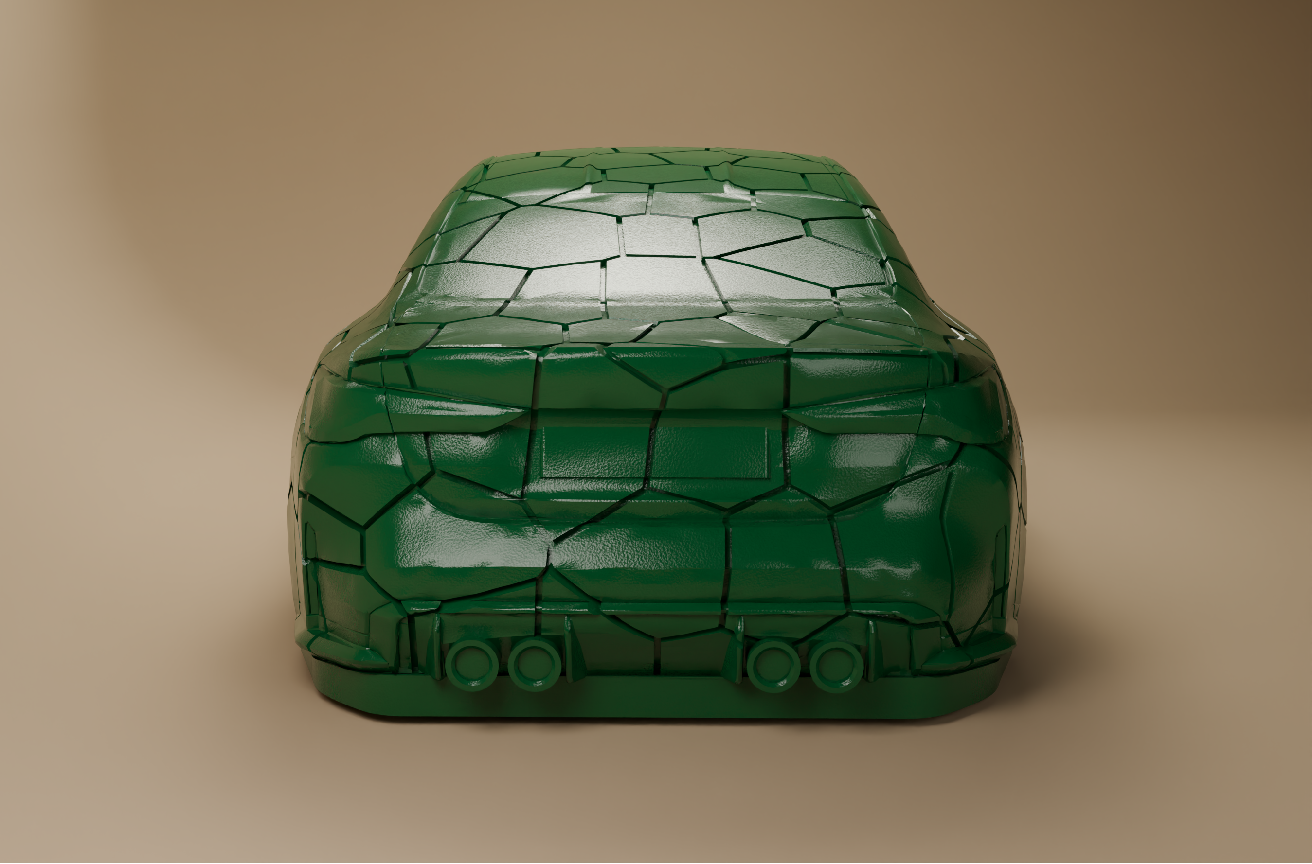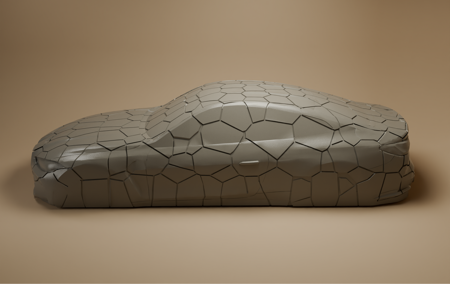 Diese Skulptur trägt Kraft in sich. Das Auto ist massiv, präsent, voller Energie. Genau diese Energie wollte ich sichtbar machen. Die aufbrechenden Linien, die ‚Power-Cracks‘, stehen für die rohe Power, die unter der Oberfläche herrscht. Sie verleihen der Skulptur Wucht und Charakter – und machen aus reiner Form ein Statement.