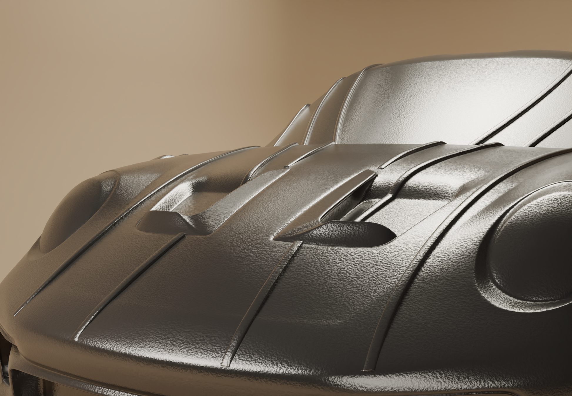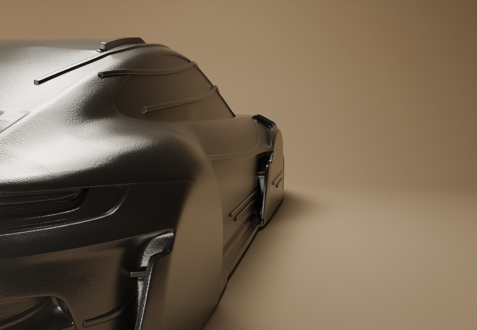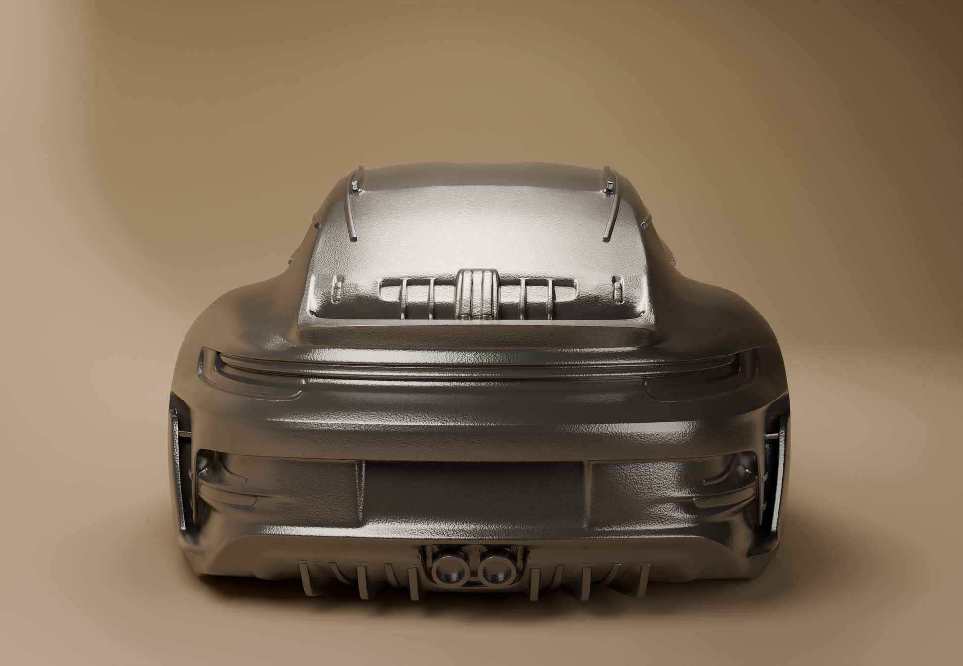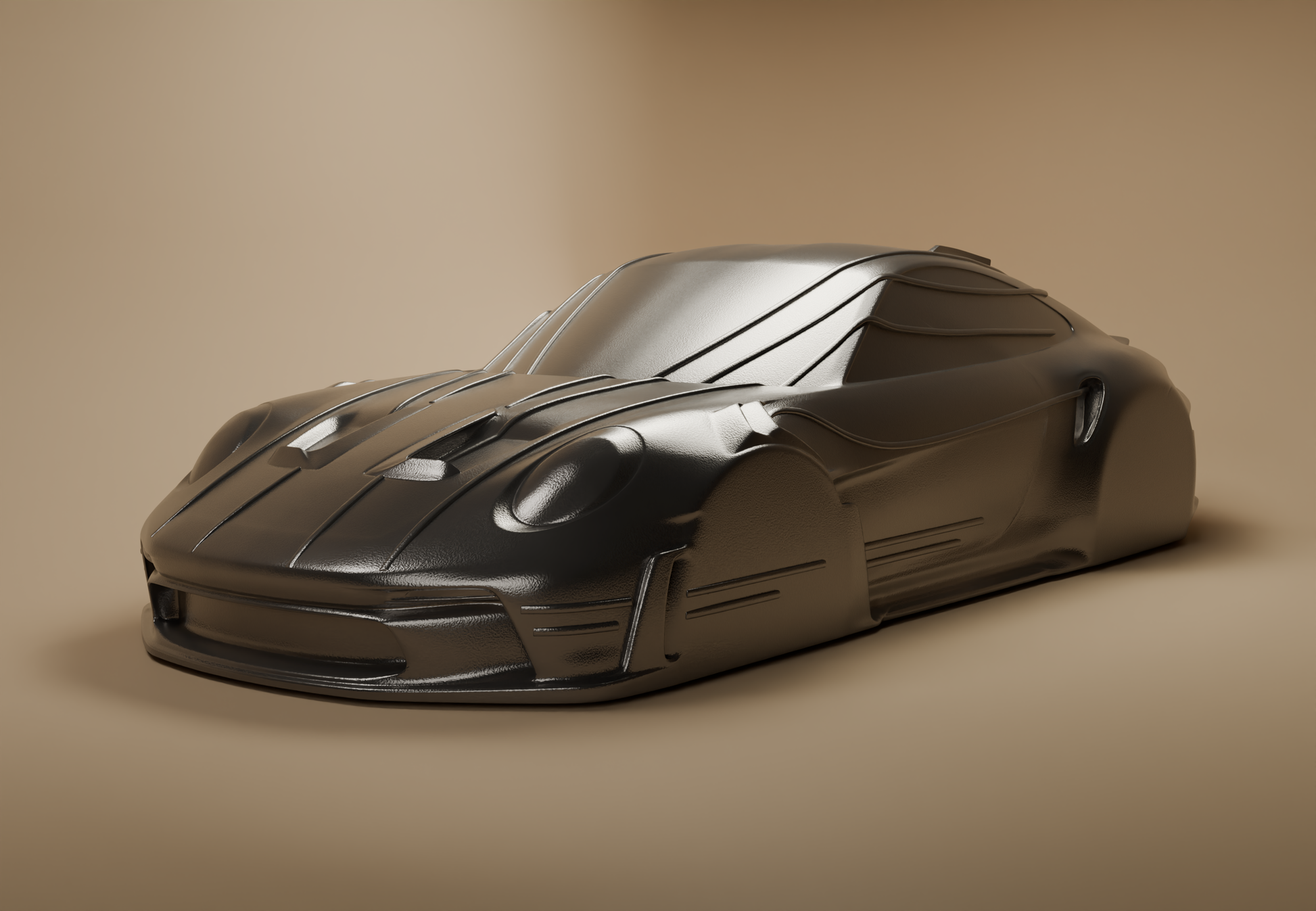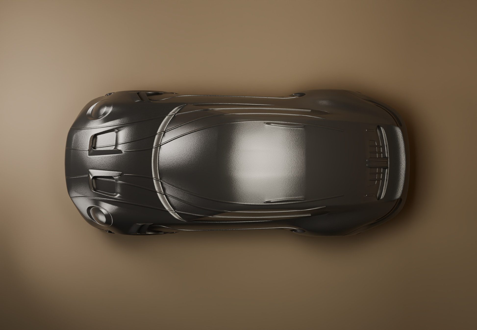 Diese Skulptur rückt aerodynamische Ingenieurskunst in den Mittelpunkt. Der Spoiler fehlt bewusst – stattdessen zeigen fließende Linien den Verlauf der Luft über die Karosserie und verleihen der statischen Form Bewegung. So wird das sichtbar, was im echten Fahrzeug unsichtbar bleibt: Die Funktion der Aerodynamik selbst.